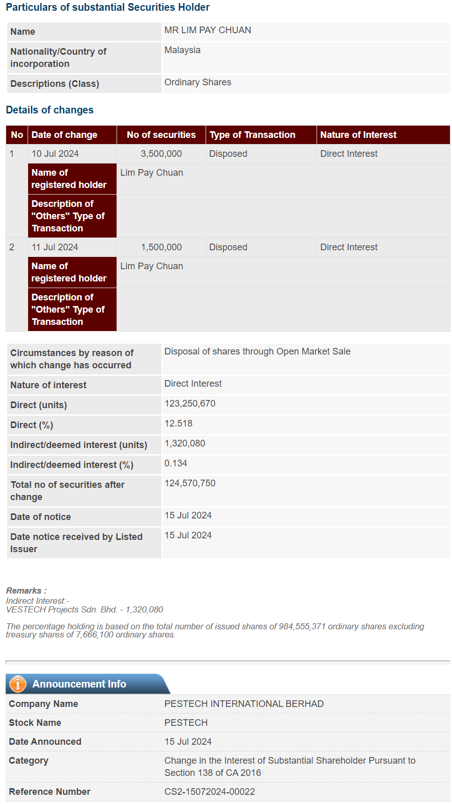 (FORMERLY KNOWN AS PESTECH INTERNATIONAL BERHAD)